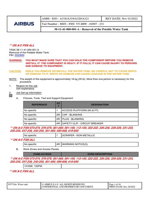 Airbus A320 Potable Water Tank Guide