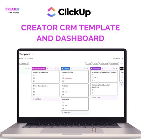 For teams, ClickUp fosters better collaboration . Team members can easily share information, assign tasks, and track progress. Real-time updates and notifications keep everyone in the loop, ensuring that nothing falls through the cracks. And with features like collaborative documents and whiteboards, ClickUp makes it easy to brainstorm ideas and work together on projects. In short, ClickUp is a powerful and versatile platform that can transform the way you work. When combined with a CRM template, it’s a match made in productivity heaven!
