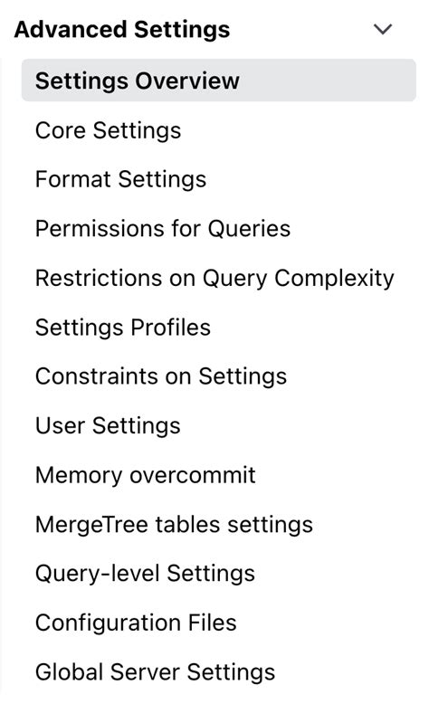 Now that we’ve established why these settings are so darn important, let’s get our hands dirty and look at some of the most critical ClickHouse global server settings you’ll want to pay attention to. These are the knobs and dials that can really make or break your performance. We’re not going to go through every single setting – that would take ages, guys! – but we’ll hit the highlights that often have the biggest impact. First up, let’s talk about max_threads . This setting determines the maximum number of threads that ClickHouse can use to process a single query. If you have a multi-core server, you’ll want to set this appropriately to leverage that power. Setting it too high can lead to context-switching overhead and contention, while setting it too low means you’re not using your hardware to its full potential. A good starting point is often the number of physical CPU cores on your server, but testing is key! Then there’s max_memory_usage . This is a critical parameter that limits the amount of RAM a single query can consume. If you don’t set this, a runaway query could potentially bring your entire server down by exhausting memory. Setting a sensible limit prevents this and ensures fair resource sharing. We also need to consider max_server_memory_usage . This is similar but applies to the entire server rather than a single query. It’s your ultimate safety net against memory exhaustion. Another important one is max_concurrent_queries . This controls how many queries can run at the exact same time. If you expect high concurrency, you’ll want to increase this, but be mindful of resource limits. Too many concurrent queries can lead to performance degradation if your hardware can’t keep up. Don’t forget about max_dictionary_lifetime . Dictionaries are super useful for enrichment, and this setting controls how long they are cached in memory. Adjusting this can impact performance and memory usage depending on your dictionary access patterns. And for those dealing with data ingestion, default_compression_codec is a lifesaver. It defines the default compression algorithm used for new tables, directly impacting storage size and query performance. Options like LZ4 or ZSTD are popular choices, offering a good balance between compression ratio and decompression speed. Remember, these are just a few of the many available settings, but focusing on these will give you a solid foundation for optimizing your ClickHouse server. Always refer to the official ClickHouse documentation for the most up-to-date information and detailed explanations of each parameter. Experimentation and monitoring are your best friends here, guys!