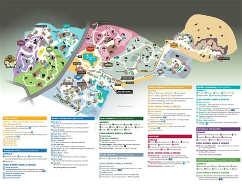 - Key Landmarks: The first thing you’ll want to do is identify the key landmarks on the map. These are the major exhibits, animal habitats, and prominent buildings that will serve as your points of reference. Look for clearly labeled areas like “ Heart of Africa ”, “ Polar Frontier ”, “ Asia Quest ”, and the “ Manatee Coast ”. These landmarks will help you orient yourself and plan your route.
