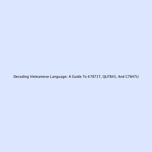 Decoding Vietnamese Language: A Guide To K7871T, QU7843, And C7847U