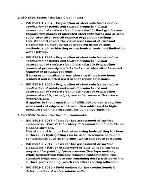 Alright, let’s get into some specific standards. This isn’t an exhaustive list, but it’ll give you a good idea of what’s out there. SSPC has tons of standards covering almost every aspect of coatings. They have standards for everything from the preparation of surfaces to the application of coatings and inspections. They’re all about making sure the job is done right. Some examples include: