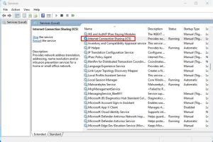 2. Locate the Internet Connection Sharing (ICS) Service: