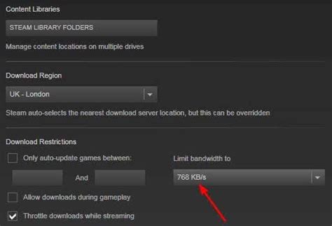 5. Set a Low Bandwidth Limit: Once you’ve enabled the option, you can set a bandwidth limit. A low bandwidth limit (e.g., 16 KB/s) will effectively prevent Steam from downloading updates in the background. Setting the limit to 0 KB/s might cause issues, so it’s best to set it to a small value.