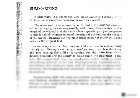 • Accuracy: Does your summary accurately reflect the main idea and supporting details of the original material? Have you omitted any crucial information or added any inaccuracies?