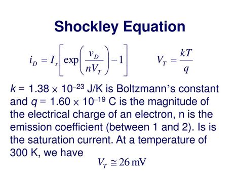 Now, let’s break down those terms, because they’re pretty key. The reverse saturation current (I_S) is a small current that flows when the diode is reverse-biased. It’s usually very tiny, like a few microamps or even nanoamps. Then there’s the thermal voltage (V_T) , which is a value related to temperature, typically around 25mV at room temperature. But the star of our show today is the ideality factor (n) . This is where the magic (and sometimes the headache) happens. It’s essentially a correction factor that helps the equation accurately model the diode’s behavior in the real world.