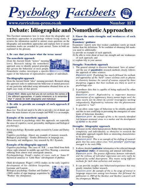 - Case Studies in Psychology: Many famous case studies in psychology, such as the case of Anna O. by Sigmund Freud, exemplify the idiographic approach. These case studies provide detailed accounts of individuals’ lives and experiences, and have contributed to our understanding of various psychological phenomena.