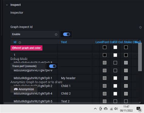 - Connections: Configure the appearance and behavior of the connections between nodes. You can customize the connection styles, colors, and labels.