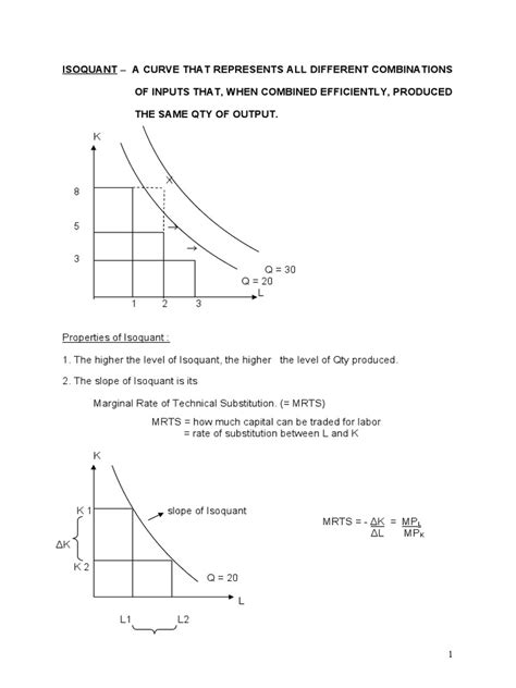 Alright, so first up, let’s chat about isoquant curves . Think of an isoquant as a graphical representation showing all the different combinations of two inputs – usually labor (L) and capital (K) – that can produce the exact same level of output . It’s like saying, “Okay, I need to make 100 widgets. I could use 10 workers and 5 machines, OR I could use 5 workers and 10 machines, and still get those 100 widgets out the door.” An isoquant curve maps out all these possible input bundles that yield that specific output quantity. The cool thing about these curves is that they usually slope downwards and are convex to the origin. Why convex, you ask? Well, it reflects the principle of diminishing marginal rate of technical substitution . Basically, as you substitute more and more of one input (say, capital) for another (labor), you need increasingly larger amounts of that substitute input to maintain the same output level. Imagine trying to replace workers with robots; at first, a few robots might replace many workers efficiently, but eventually, each additional robot might not be as effective at boosting output as the previous ones, especially if you need human oversight or specific tasks robots can’t do. Producers use isoquants to visualize different production possibilities and understand the trade-offs involved in choosing their input mix. Higher isoquant curves represent higher levels of output, and producers always aim to be on the highest possible isoquant they can achieve given their constraints. It’s all about efficiency and understanding how flexible you can be with your resources to hit your production targets. So, whenever you see a curve showing various combinations of inputs leading to the same output, you’re looking at an isoquant!