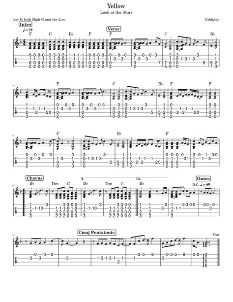 Now, let’s combine the chords and the strumming pattern! This is where the magic happens. The structure of “Yellow” is fairly repetitive, which is great for learning. The main progression is G - D - Em - C. The first verse generally follows this sequence. You’ll play the G chord, and strum the pattern described above. Next is the D chord, the Em chord, and finally, the C chord, each getting the same strumming pattern. Pay attention to the timing between each chord change. The goal is to make the transitions smooth. Once you get the hang of it, you’ll feel the rhythm flowing naturally. Keep the timing consistent between the chords. To get the most out of your practice, try playing along with the original song. This way, you can match your playing with the actual track and adjust your timing accordingly. This is a very common technique to improve your playing skills. It is important to know that you may need to adjust your strumming speed to match the tempo of the original song. Let’s summarize the song structure to make it even easier.
