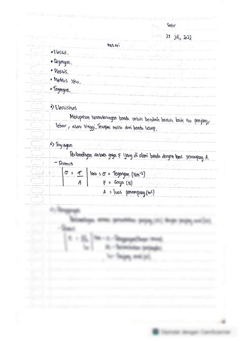 Sementara itu, regangan (strain, simbolnya \(\epsilon\) ) adalah ukuran perubahan bentuk relatif terhadap ukuran aslinya. Kalau kita bicara regangan tarik atau tekan, ini adalah perbandingan antara perubahan panjang ( \(\Delta L\) ) dengan panjang awal ( \(L_0\) ). Jadi, \(\epsilon = \Delta L / L_0\) . Regangan ini biasanya nggak punya satuan, atau kadang dinyatakan dalam persen (%). Kalau kamu narik karet gelang sepanjang 10 cm sampai jadi 12 cm, berarti perubahan panjangnya 2 cm, dan regangannya adalah 2 cm / 10 cm = 0.2 atau 20%. Regangan inilah yang menunjukkan seberapa ‘melar’ atau ‘menciut’ sebuah material. Penting dicatat, regangan ini harus dalam batas elastis ya, artinya kalau gayanya dihilangkan, materialnya balik ke bentuk semula. Kalau sudah lewat batas elastis, dia bakal berubah bentuk permanen, nah itu udah beda cerita.