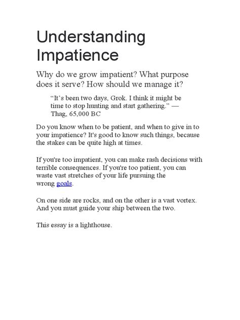 To truly understand impatience, we need to delve into its roots. It’s not simply a character flaw; it’s often a complex interplay of psychological and environmental factors. One key element is our inherent desire for control. As humans, we crave a sense of control over our environment and our lives. When we experience delays or obstacles, it can trigger a feeling of helplessness and a loss of control, leading to frustration and impatience. For instance, consider being stuck in traffic. You have a destination in mind, but the traffic jam prevents you from reaching it in a timely manner. This lack of control over the situation can easily lead to feelings of impatience and annoyance. Furthermore, past experiences can significantly shape our levels of patience. If we’ve consistently experienced delays or setbacks in the past, we may develop a heightened sensitivity to delays in the future. This can lead to a cycle of impatience, where we anticipate delays and react with frustration even before they occur. Think about a time when you were repeatedly let down, bro . Did it make you less patient in similar situations later on? It probably did!