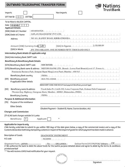 Ready to initiate an Outward Telegraphic Transfer (OTT)? Here’s a step-by-step guide to get you through the process smoothly. First, you’ll need to gather the necessary information . This includes the recipient’s full name, the name and address of their bank, their account number, and the SWIFT/BIC code of their bank. Next, you need to visit your bank . You can usually do this in person or via online banking, depending on your bank’s services. Fill out a transfer form . Your bank will provide a form where you’ll input the recipient’s details and the amount you want to send. Double-check all the details to ensure accuracy, as any errors can cause delays or complications. You’ll then submit the form and provide payment . If you’re doing this in person, the bank representative will guide you. If it’s online, you’ll follow the prompts. You’ll likely need to pay a fee for the transfer. After that, your bank will process the transfer . They’ll send the instructions through the SWIFT network. Lastly, keep a record of the transaction. Note the reference number and the expected delivery date. Keeping this information handy is useful if you need to track the transfer. By following these steps, you can successfully initiate an Outward Telegraphic Transfer.
