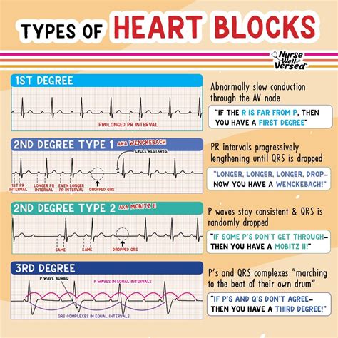 • AV blocks: A prolonged PR interval is a hallmark of first-degree AV block, indicating a delay in the electrical signal’s passage through the AV node. Depending on the degree of delay, other types of AV blocks are possible. Second-degree AV block (Mobitz type I, Mobitz type II) and third-degree AV block are more severe conditions.