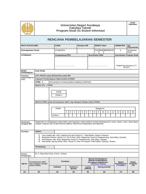 First things first, let’s decode this acronym. RPS typically stands for Rencana Pembelajaran Semester , which translates to Semester Learning Plan . This is basically a detailed roadmap of what a course will cover throughout the semester. OCW , or OpenCourseWare , means that these materials are freely and openly available online. UNS refers to Universitas Sebelas Maret , a university in Indonesia. So, RPS OCW UNS refers to the semester learning plans and other course materials made available online by Universitas Sebelas Maret.