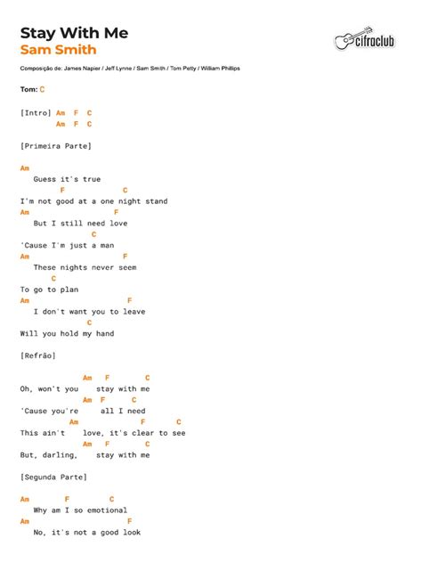 Before we even think about plucking, it’s super important to get a handle on the song’s main chord progression. “Stay With Me” is built around a relatively simple, yet incredibly effective, set of chords that create that melancholic yet hopeful vibe. The key progression you’ll be working with is C - G - Am - F . Let’s break these down. The C major chord is your home base, a bright and foundational sound. Then you move to G major , a strong dominant chord that pulls you forward. Next up is A minor , which brings in that touch of sadness and introspection. Finally, F major provides a smooth resolution before cycling back to C. Understanding this sequence is crucial because the plucking pattern will follow this harmonic movement. Think of it like this: each chord gets its moment to shine, and your fingers will be dancing between these shapes. We’ll be using standard tuning for this tutorial, so make sure your guitar is tuned to E-A-D-G-B-e. This progression is what gives “Stay With Me” its recognizable sound, and mastering it is the first big step towards nailing the plucking. Don’t worry if you’re new to some of these chords; practice makes perfect, and we’ll be repeating them a lot. The beauty of this song lies in its repetition and subtle variations, so getting these core chords down solid is non-negotiable. Spend some time just strumming through C-G-Am-F, feeling the transitions. This muscle memory will be a huge help when we start adding the intricate plucking details. It’s all about building that foundation, guys, so don’t skip this part!