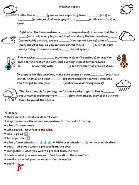 Understanding these terms is crucial for accurately describing current and future weather conditions. You’ll use them to explain the temperature, precipitation, wind speed, and other relevant factors in your report. Make sure you’re comfortable using these words in sentences and can pronounce them correctly. A strong vocabulary will enhance your credibility and help your audience understand the weather report more easily.