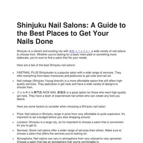 Hey guys! Ever walked into a nail salon and felt a little overwhelmed by all the choices? You’re not alone! Picking the perfect nail salon can be as crucial as choosing the right outfit for a big event. It’s not just about getting a fresh coat of polish; it’s about the whole experience – the ambiance, the cleanliness, the skill of the technicians, and of course, the final result that makes your nails look absolutely fabulous . In this ultimate guide, we’re going to dive deep into what makes a nail salon great, how to find the best one for you, and what to expect when you head in for your next pampering session. Whether you’re a nail art novice or a seasoned pro looking for a new go-to spot, this guide has got you covered. We’ll be talking about everything from basic manicures and pedicures to the latest trends in gel, dip, and acrylics. Plus, we’ll dish out some insider tips on how to keep your nails healthy and looking their best, even between salon visits. So, grab your favorite beverage, get comfy, and let’s explore the wonderful world of nail salons together! Get ready to discover your new favorite nail destination and elevate your nail game to a whole new level. We’re going to make sure you walk out feeling confident, beautiful, and with nails that are truly Instagram-worthy. This isn’t just about nails; it’s about self-care, a little bit of luxury, and a whole lot of fun. Let’s get started on this nail-tastic journey!