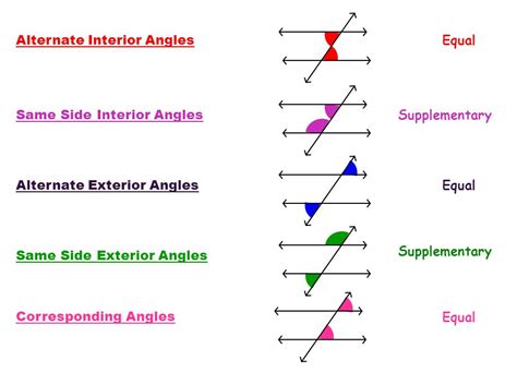 Understanding these angle types and their properties is crucial. When the two lines intersected by the transversal are parallel, these relationships become incredibly powerful tools for solving geometry problems, finding unknown angles, and proving geometric theorems. It’s like having a cheat sheet for angle relationships!