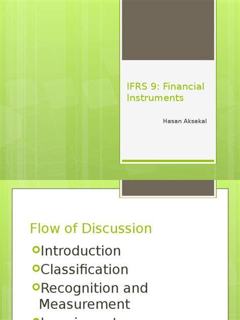 IFRS 9 , or International Financial Reporting Standard 9 , is all about financial instruments. It sets out the requirements for recognizing and measuring financial assets, financial liabilities, and some contracts to buy or sell non-financial items. Why does it matter? Because it replaced the older IAS 39 and brought about significant changes in how companies account for financial risks, especially credit risk. In essence, IFRS 9 aims to provide more relevant and forward-looking information to investors and other stakeholders.