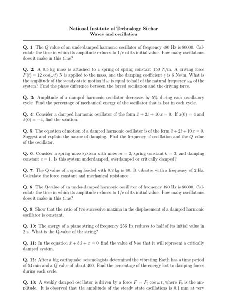 Alright guys, let’s get a little bit nerdy and talk about the math that makes oscillations tick. It’s not as scary as it sounds, I promise! The most basic form of oscillation is simple harmonic motion (SHM) . Remember the mass on a spring? The equation of motion for SHM is a second-order linear differential equation. Its solutions are typically sine and cosine functions . Why these functions? Because they are inherently periodic – they repeat themselves over time. Mathematically, a simple harmonic oscillator’s displacement x(t) from equilibrium can be described as: x(t) = A * cos(ωt + φ) . Here, A is the amplitude (the maximum displacement from the equilibrium), ω (omega) is the angular frequency (how quickly it oscillates, related to how many cycles per second), and φ (phi) is the phase (which tells us where in the cycle the oscillation starts). The angular frequency ω is often related to the physical properties of the system, like the spring constant k and the mass m , by the formula ω = sqrt(k/m) . This formula is super important because it tells us that the natural frequency of oscillation is determined by the system’s stiffness and mass. Damped oscillations are another crucial concept. Real-world oscillators lose energy over time due to friction or other resistive forces. This causes the amplitude of oscillation to decrease gradually. The mathematical description of damped oscillations involves adding a damping term to the equation of motion, which often leads to exponential decay of the amplitude. Forced oscillations occur when an external periodic force is applied to the system. This is where resonance becomes a big deal. If the frequency of the driving force matches the natural frequency of the system, the amplitude of oscillation can increase dramatically, potentially causing damage. The analysis of forced oscillations often involves Fourier analysis , a powerful mathematical tool that allows us to break down complex waveforms into a sum of simple sine and cosine waves of different frequencies and amplitudes. This is incredibly useful because many real-world signals are not simple sine waves but complex combinations of many frequencies. Sanders’ principles, especially in signal processing, heavily rely on such mathematical frameworks. Understanding these mathematical models allows us to predict how a system will behave under different conditions, design systems that avoid unwanted oscillations, or generate specific oscillatory signals for various applications. It’s the language we use to precisely describe and control the rhythmic dance of oscillating systems.