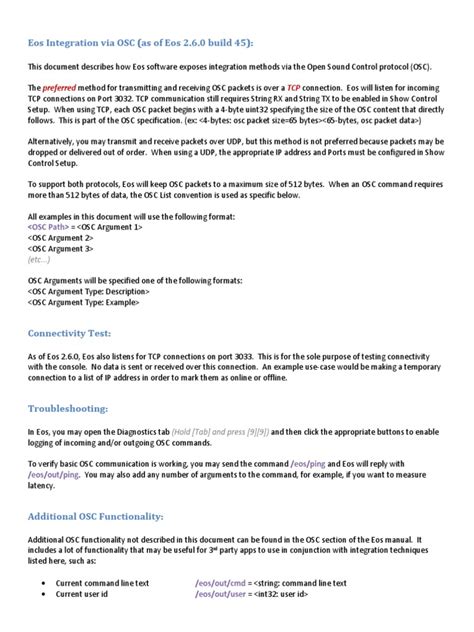 The OSC arguments are the actual data being sent. These can be various data types, including integers, floats (decimal numbers), strings (text), blobs (binary data), and even other OSC messages (which are called bundles ). So, if our address pattern was /sound/synthesis/oscillator/frequency , the argument might be a floating-point number like 440.0 , representing the frequency in Hertz. You can also send multiple arguments. For instance, you could send /control/lighting/color with arguments like 255 (red intensity), 0 (green intensity), and 0 (blue intensity) to set a light to bright red. This hierarchical addressing system makes it incredibly easy to organize and route messages, ensuring that the right data gets to the right place without any confusion. It’s like having a super-organized postal service for your digital signals. The specification also defines how these messages are encoded into byte streams for transmission, ensuring that different platforms and applications can understand each other. It’s this standardized structure that makes OSC so powerful and interoperable across a wide range of devices and software, from your laptop to your smartphone, and even specialized hardware controllers.