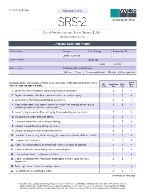 Alright, first things first: What exactly is the SRS-2? SRS-2 stands for the Social Responsiveness Scale, Second Edition. Think of it as a questionnaire designed to measure the severity of social challenges in individuals. Developed by researchers, this tool helps assess the presence and extent of autistic traits. It’s not just a simple checklist; it provides a standardized way to evaluate social behaviors across a wide range of ages and abilities. The SRS-2 is primarily used to assess the severity of autism spectrum disorder (ASD) symptoms. It’s often used as part of a comprehensive evaluation, alongside other diagnostic tools, interviews, and observations. The goal? To gain a complete picture of an individual’s social functioning. The SRS-2 doesn’t diagnose ASD on its own, but it offers valuable data that helps clinicians make informed decisions. It’s like having an extra set of eyes and ears that helps in evaluating those often subtle social nuances that can be tricky to spot. It’s a helpful tool in the diagnostic process, providing quantifiable data to support clinical judgments. The beauty of the SRS-2 lies in its efficiency. It provides a structured method of evaluating social behaviors, saving time and offering a standardized basis for comparison. Also, it’s not just for kids! The SRS-2 has versions designed for different age groups, spanning from preschool-aged children to adults. It also helps to track progress over time. By taking the SRS-2 at different points, you can observe changes in social functioning, which is super helpful when monitoring the effectiveness of interventions and treatments. It offers a standardized way to evaluate social behaviors and provides valuable data for clinicians. Therefore, it’s a critical tool in the comprehensive assessment of individuals suspected of having ASD.