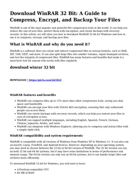 You see, WinRAR 32-bit isn’t just another program; it’s a trusty companion for anyone who deals with files regularly. Whether you’re a student, a professional, or just someone who downloads stuff online, the chances are you’ll encounter a .rar or .zip file at some point. And when you do, you’ll need a reliable tool to handle it. The “32-bit” part specifically refers to its compatibility with 32-bit operating systems and processors. While 64-bit systems are more common now, a significant number of computers out there still rely on 32-bit architecture, making this particular version incredibly relevant. This article is your ultimate guide, designed to walk you through everything you need to know, from what WinRAR 32-bit is to how to use its advanced features like a pro. We’ll cover installation, common uses, and even some cool tips and tricks to optimize your file management. Our goal here is to give you all the high-quality information you need to make the most of this fantastic software, helping you understand its value and how it can simplify your digital tasks. So, buckle up, because by the end of this read, you’ll be a WinRAR 32-bit wizard, ready to compress, extract, and secure your files with confidence! We want to ensure you get maximum value from this guide, making your file handling not just easy, but efficient and secure . Let’s get started, shall we? You’ll find that this little piece of software can save you a lot of headaches, trust me.