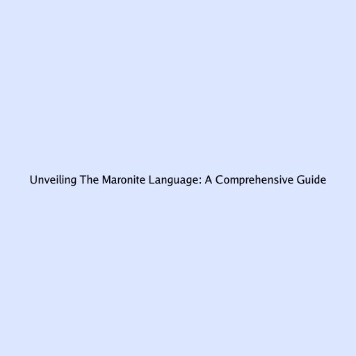 Unveiling the Maronite Language: A Comprehensive Guide