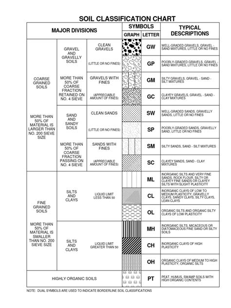 3. Classify clean gravels and sands: For clean gravels (5% or less fines), use the gravel symbol (G). For clean sands (5% or less fines), use the sand symbol (S). Then, you need to determine if it’s well-graded (W) or poorly-graded (P) using Cu and Cc values from sieve analysis, or if it’s a silty (M) or clayey © sand/gravel based on plasticity charts. So, you might get GW, GP, GM, GC, SW, SP, SM, or SC.