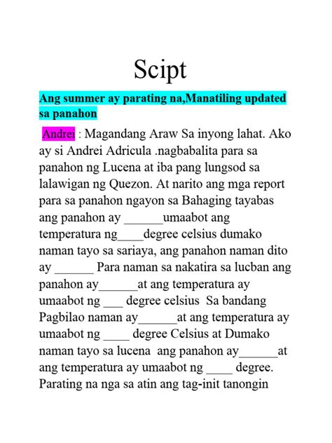 Weather Update Today: Tagalog News Script
